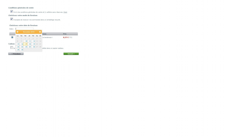 Choix de la date et du créneau horaire de livraison
