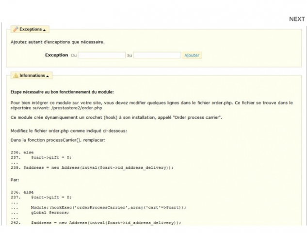 Ce module permet à l'utilisateur de choisir la date et le créneau horaire de livraison, selon la disponibilité du commerçant.